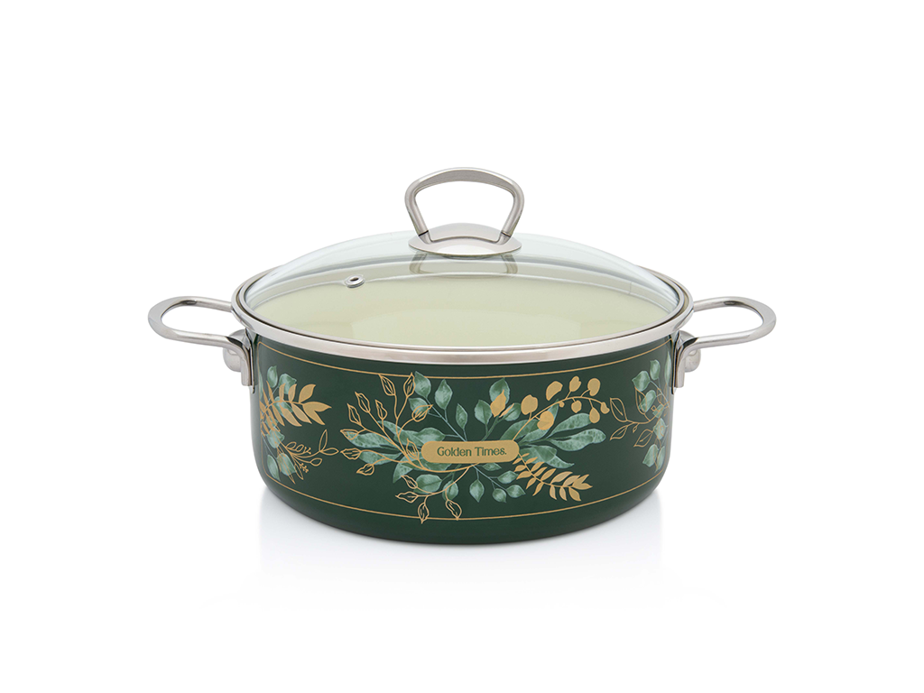 Cratita cu capac sticla Golden Times Metalac, email, 24cm, 4.75l